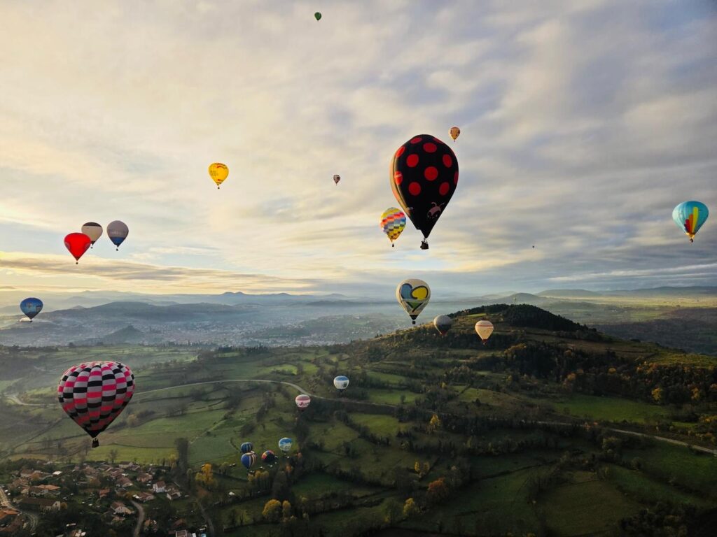 Chaque année, la montgolfière au Puy-en-Velay transforme le ciel d’Auvergne en un spectacle grandiose. Au mois de novembre, les Montgolfiades marquent la fin de la saison des vols en ballon à air chaud. Pendant plusieurs jours, le ciel du Velay devient un véritable tableau vivant, coloré par une quarantaine de montgolfières venues de France et d’Europe. Les ballons s’élèvent au-dessus des reliefs volcaniques et offrent un panorama spectaculaire.